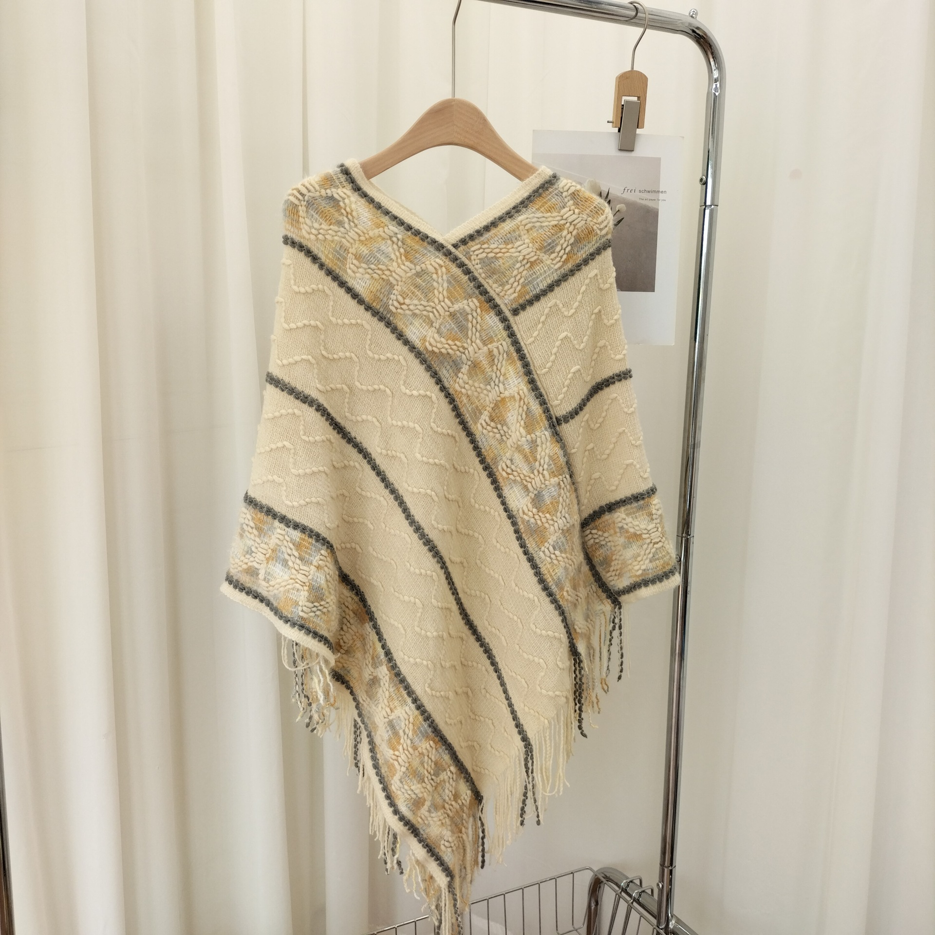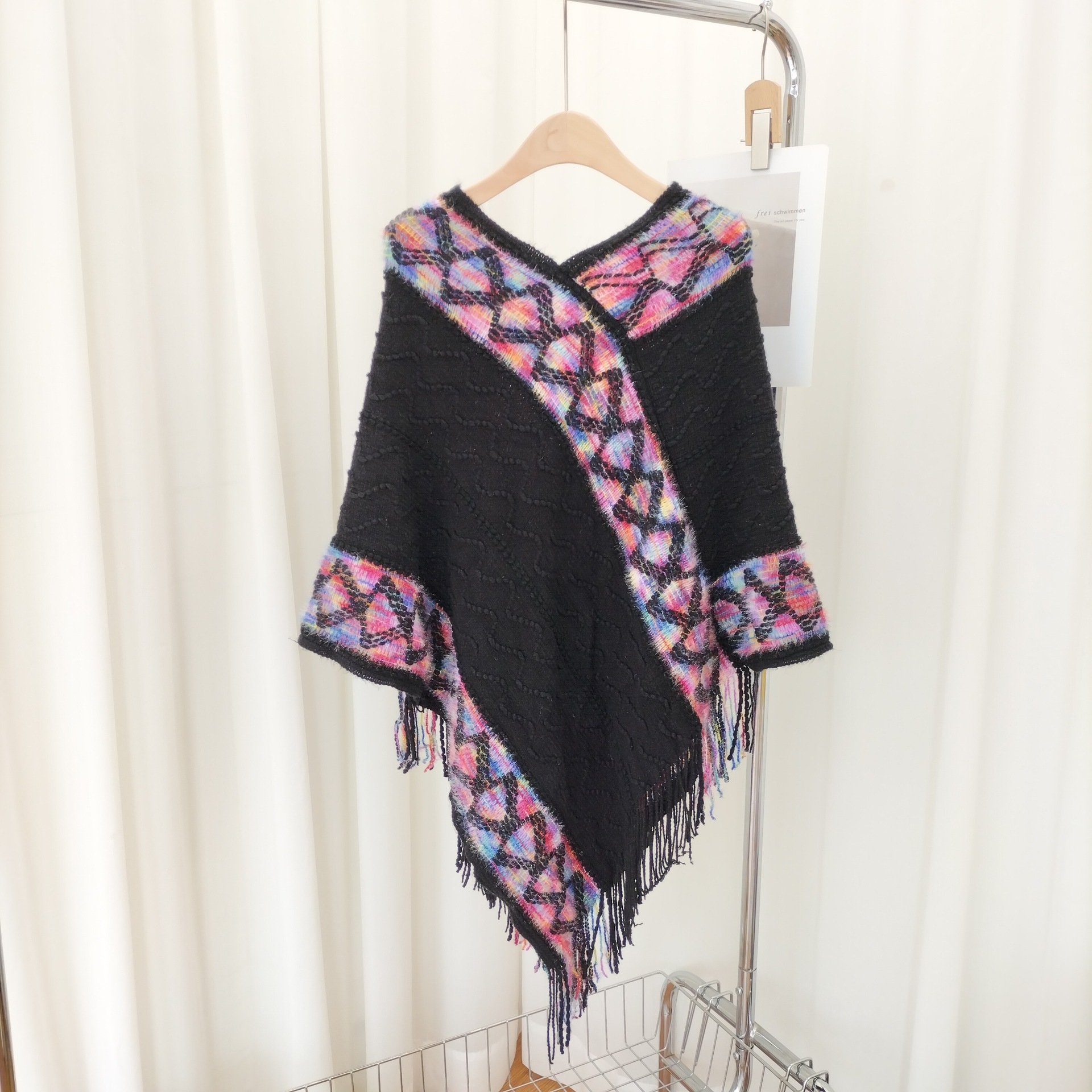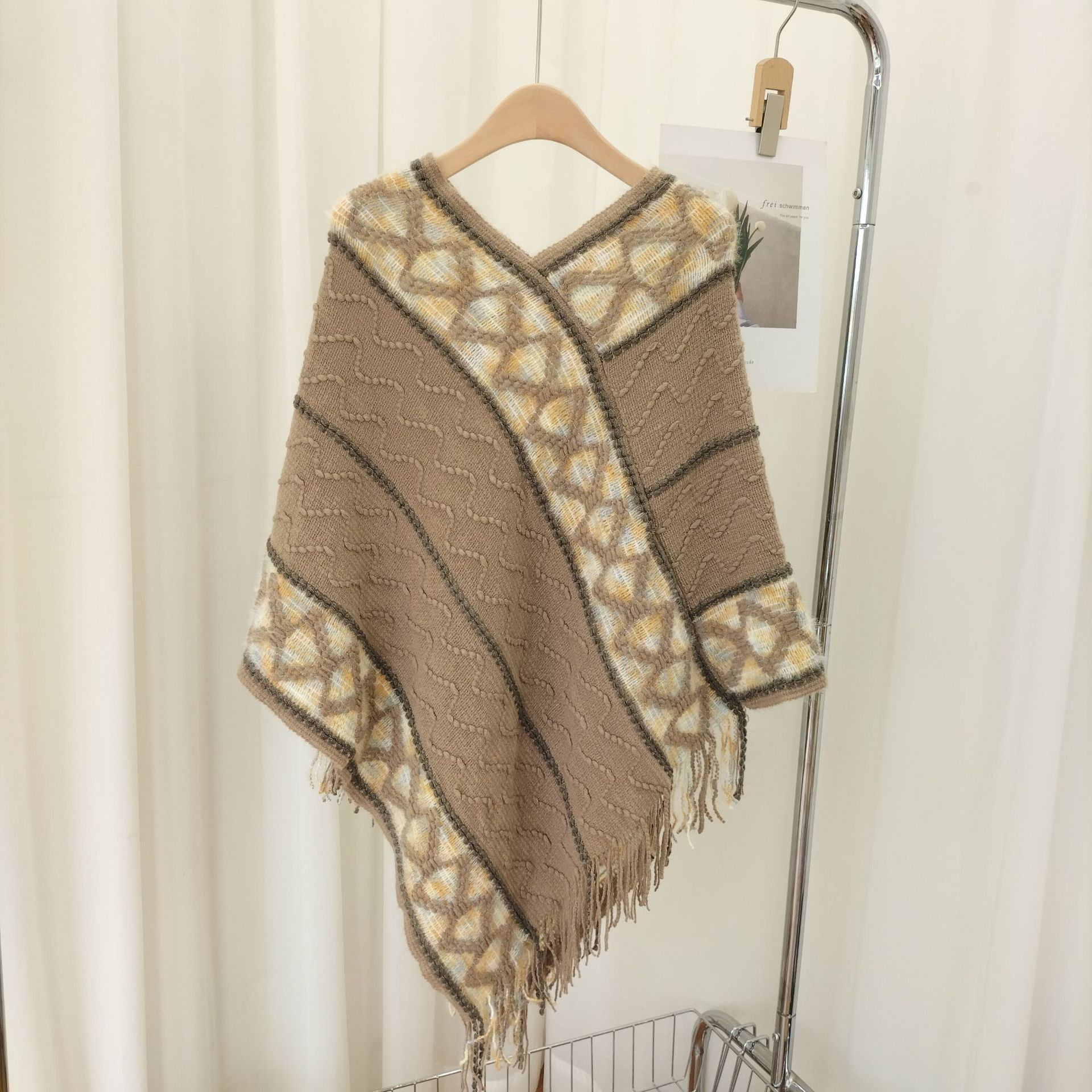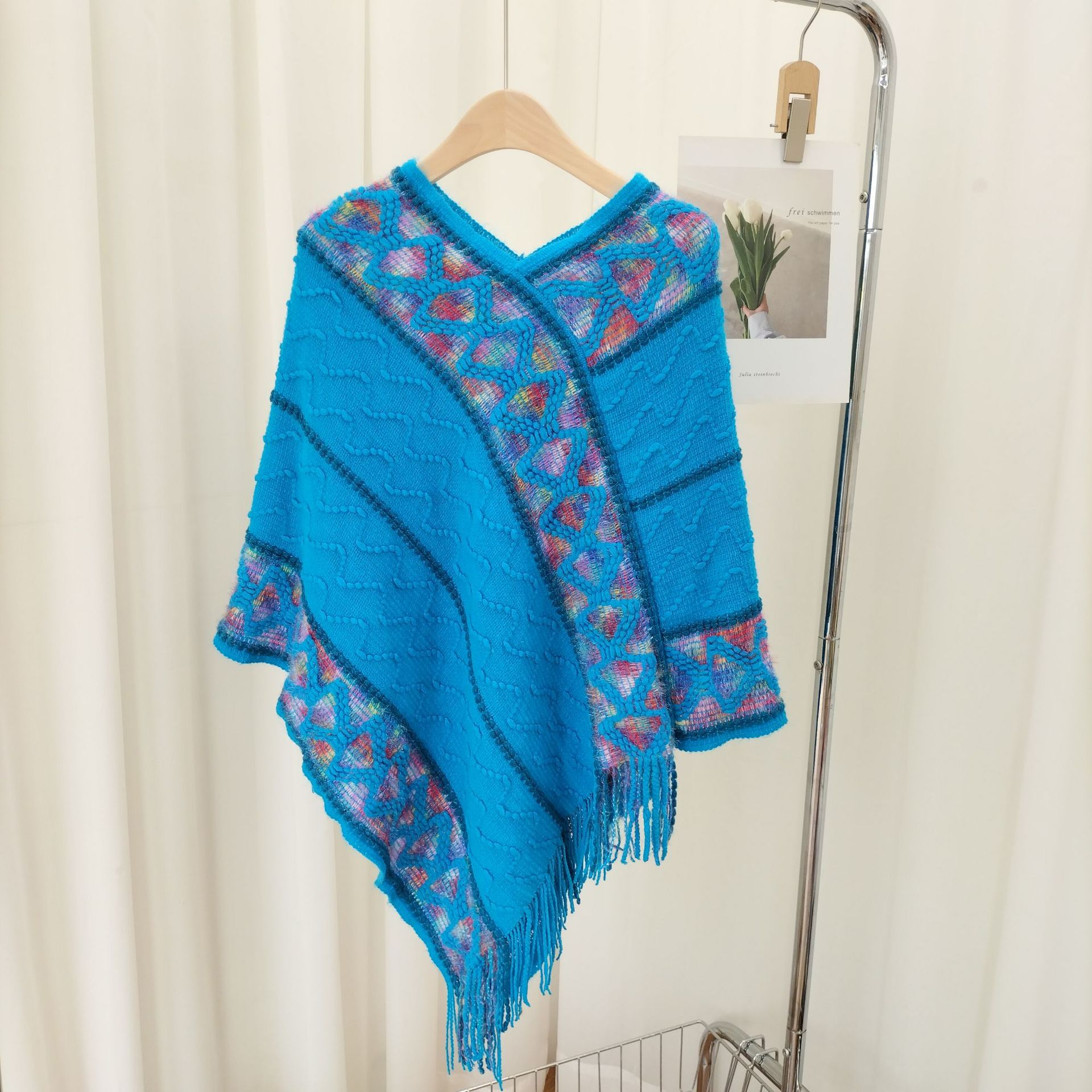 12分鐘前流蘇套頭針織披肩,民族風披肩波浪彩色百搭款 - 最划算!【多款式一起入!】3入組-NT$1590