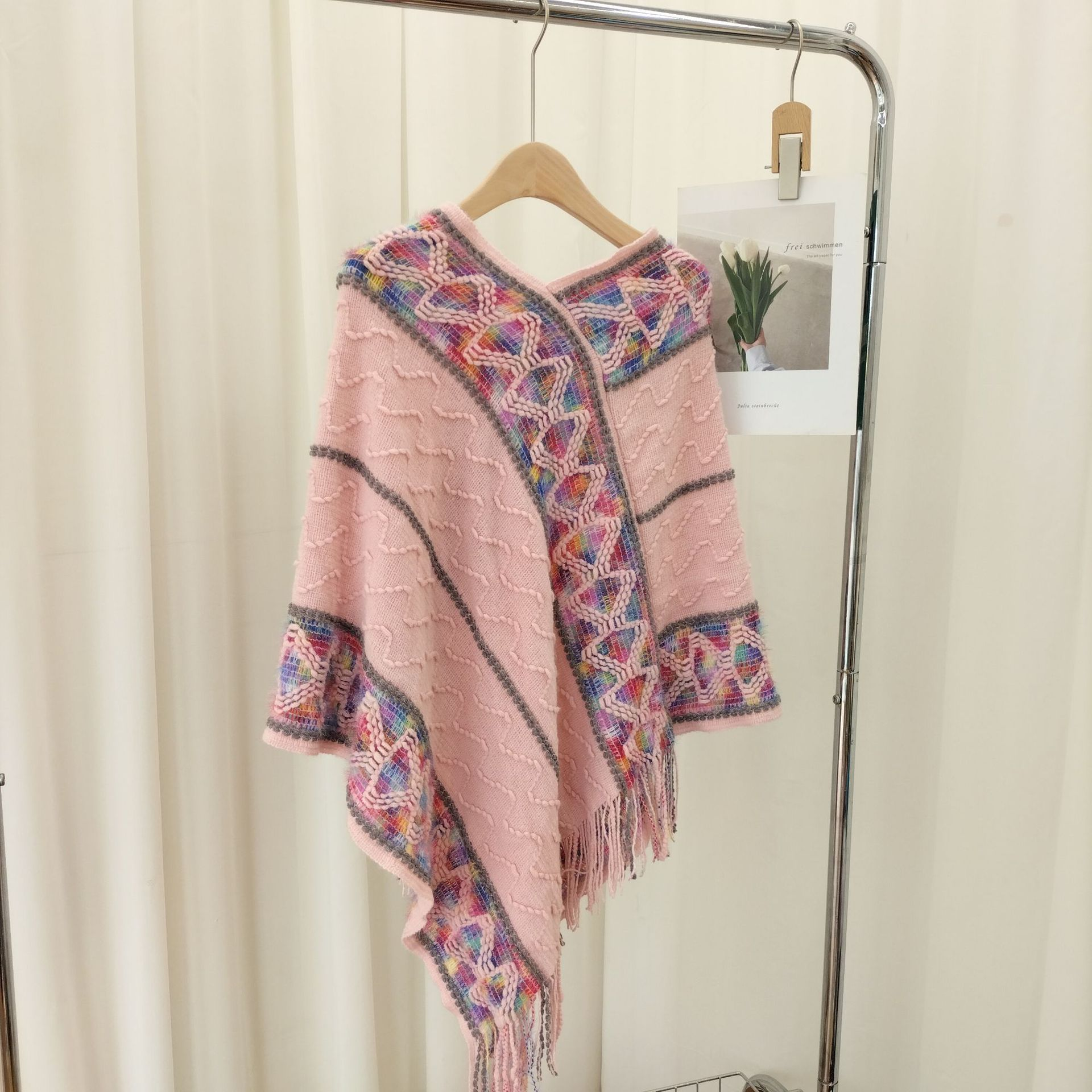 5分鐘前流蘇套頭針織披肩,民族風披肩波浪彩色百搭款 - 最划算!【多款式一起入!】3入組-NT$1590