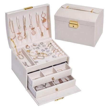 15分鐘前帶鎖三層抽屜首飾盒 。大容量,巨能裝,滿足女孩子收集癖,各種首飾裝裡面,防灰防塵防氧化,不易丟,超好用 - NT$1299兩入組