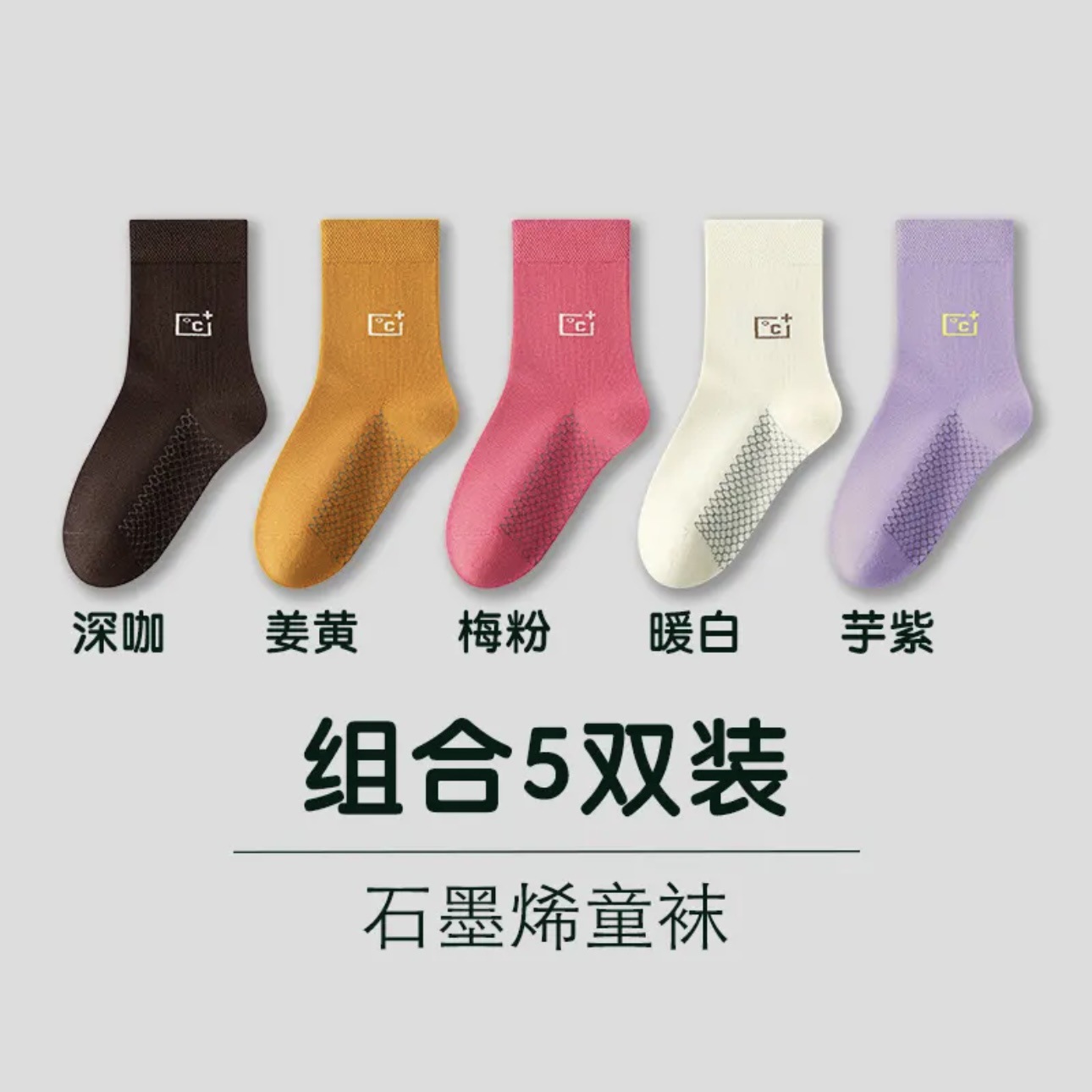 5分鐘前韓系純色字母長筒兒童石墨烯保暖防臭襪 - 【禮盒5雙裝 嘗鮮套餐】1入組-NT$880